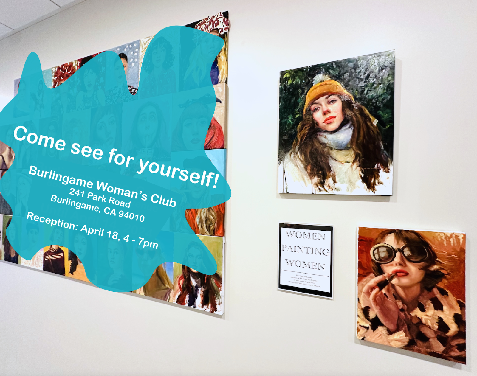 In the spirit of celebrating local women artists and women in the arts, the Burlingame Woman's Club is hosting "Women Painting Women," an Art Show and Open House for the community to view the inspired works by local artists. Sponsored by the Burlingame City Council and Art Attack, we are thrilled to offer extended viewing of this traveling exhibit.